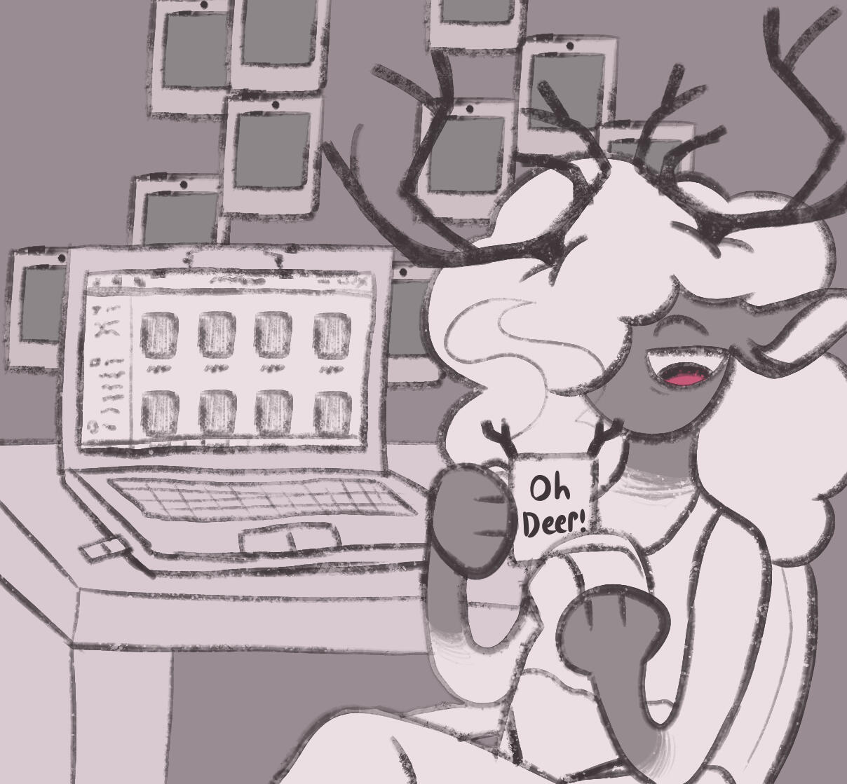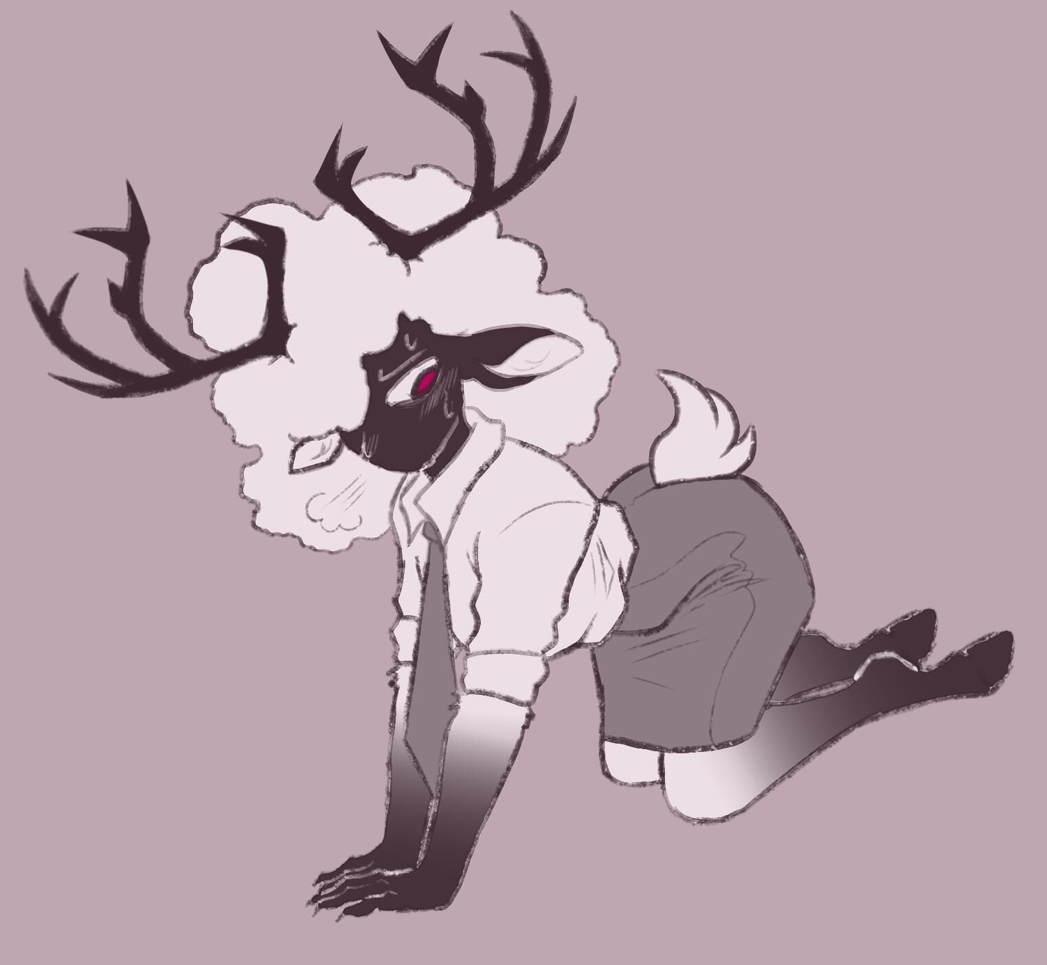 Doe is a cannibalistic deer-esque humanoid and slasher. She is very skittish and extremely wary of others; Fears abandonment & not being enough.She spends majority of her time in the woods hunting deer with her axe—mostly for food. Sometimes she likes to bother Slaughter to cut up deer for her—and flirts with her while she does it.Aside from deer, she also hunts people—mostly for fun or stress relief, rarely for food. If she ever comes across anyone who's harmed her in any way, she prefers to kill them in more cruel and sadistic ways.